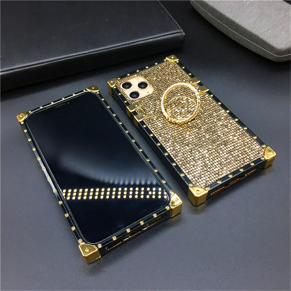 Das Gitter- und Glitzermuster verleiht dem Smartphone ein edles, modernes Aussehen, perfekt für Damen, die Luxus und Stil schätzen. Der integrierte Ringständer sorgt für sicheres Halten beim Fotografieren, Schreiben oder Ansehen von Videos, während das Anti-Rutsch-Design zusätzlichen Komfort bietet.