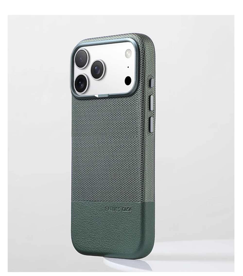 Diese luxuriöse Handyhülle wurde speziell für die iPhone 17 Serie entwickelt und bietet optimalen Schutz mit stilvollem Design. Hergestellt aus hochwertigem, mattem PU-Kunstleder, kombiniert sie ein elegantes Erscheinungsbild mit funktionalen Eigenschaften. Die magnetische Rückseite ermöglicht die volle Kompatibilität mit MagSafe-Zubehör, während das stoßfeste Design Ihr Gerät zuverlässig bei Stürzen schützt. Die Hülle ist kratzfest, verhindert Fingerabdrücke und reduziert Blendeffekte dank ihrer Anti-Glare-Oberfläche.
