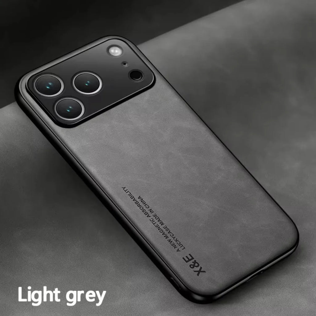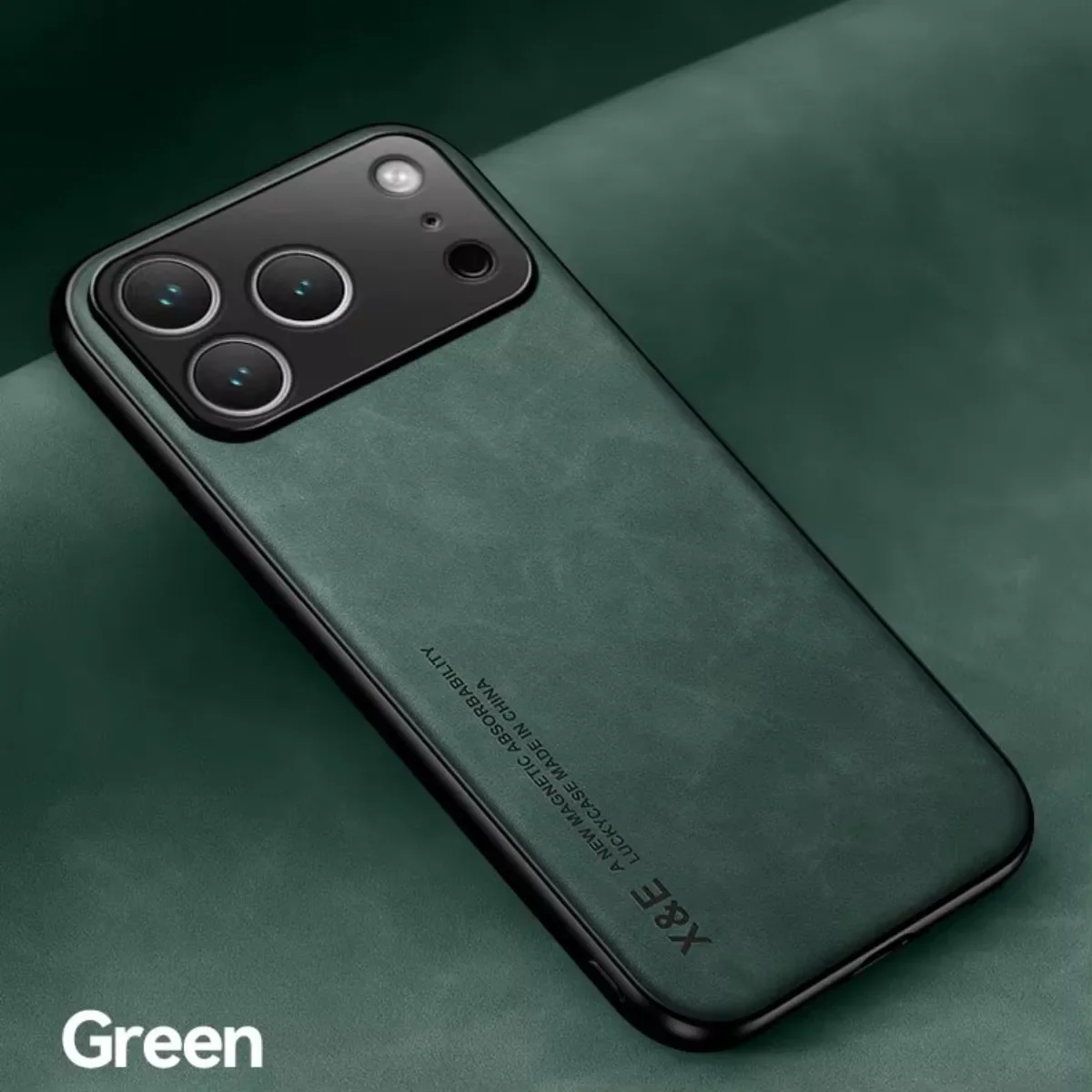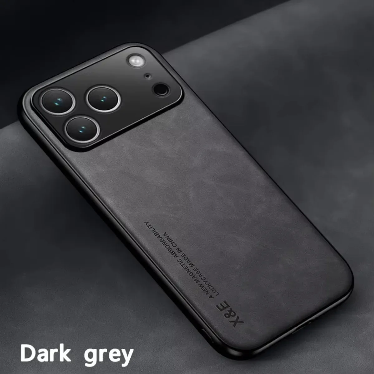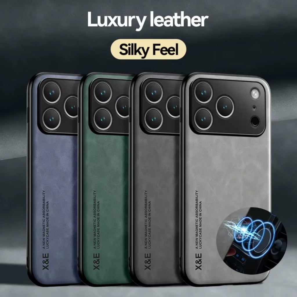 Luxus Lederhülle mit Metallplatte für iPhone 17 Serie – Magnetisch & Kratzfest