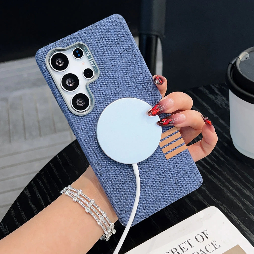 Luxuriöse Leinenstoff Hülle für Samsung S24 & S25 mit Magsafe