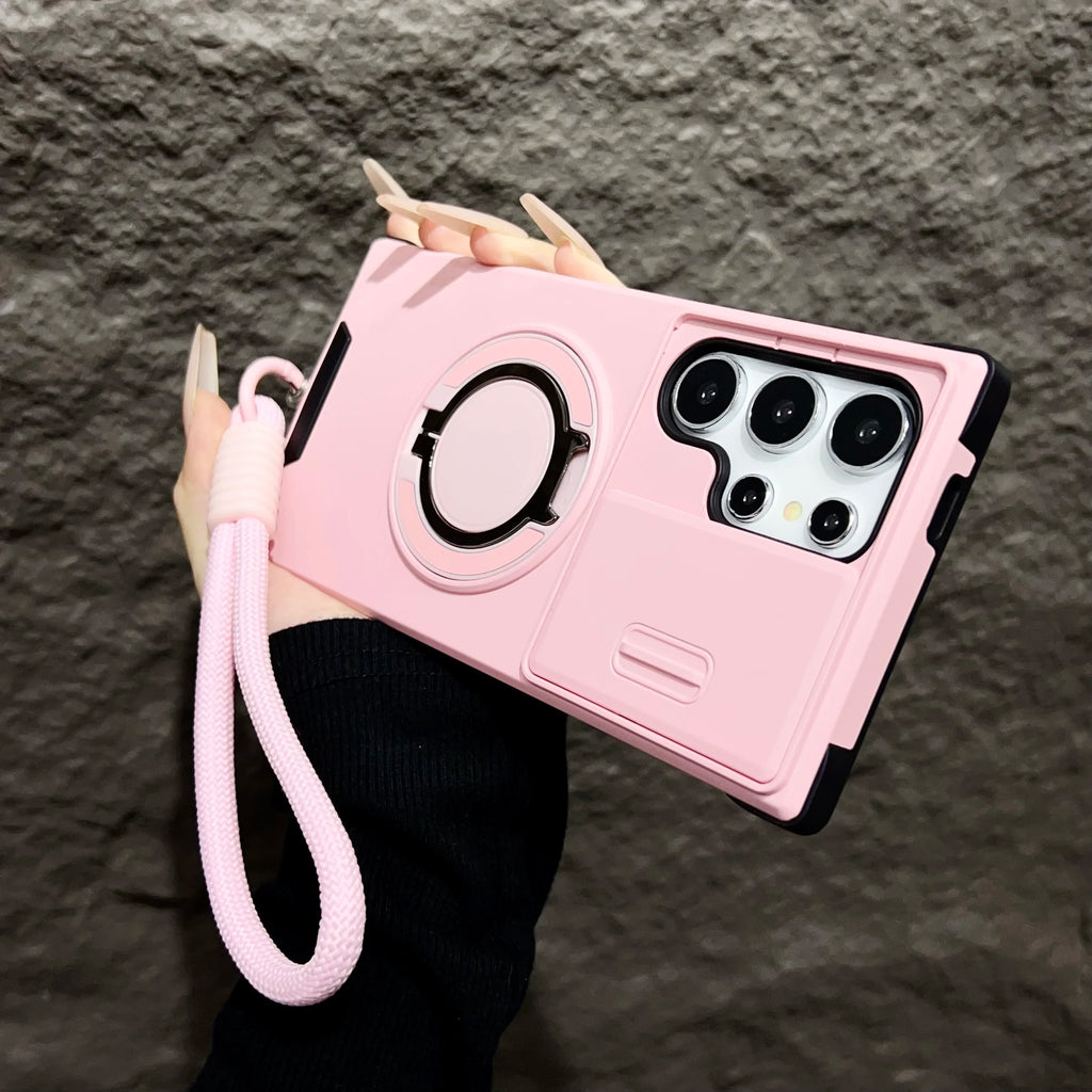 Stoßfeste Rüstungshülle mit Magnetring & Kameraschutz für Samsung Galaxy S25 S24 S23 S22 S21 Ultra/Plus – Integriertes Lanyard & Halterung