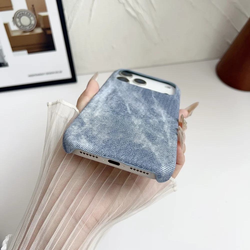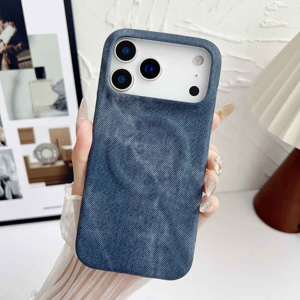 Diese modische Jeans-Leder-Magsafe-Handyhülle vereint Stil, Funktionalität und Schutz in einem. Die Hülle besteht aus hochwertigem, gefrostetem Jeans-Leder-PC-Material, das Ihr Smartphone vor Kratzern, Stößen und Fingerabdrücken schützt. Das halbe Rahmen-Design bietet eine schlanke Silhouette, ohne den Schutz zu vernachlässigen, während die erhöhten Rahmenkanten Kameralinsen und Display zusätzlich sichern.