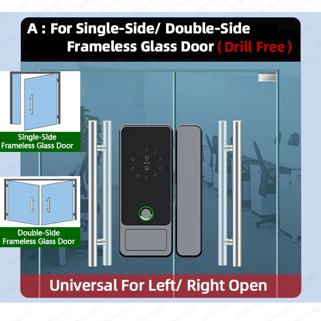 Das RAYKUBE G18 ist ein fortschrittliches, intelligentes Glastürschloss, das speziell für rahmenlose oder gerahmte Glastüren in Büros, Geschäften und Privathaushalten entwickelt wurde. Es unterstützt eine bohrfreie Installation und bietet eine elegante sowie sichere Zutrittslösung mit bis zu 6 Entsperrmethoden: Tuya-App, Bluetooth, Fingerabdruck, Passwort, IC-Karte und mechanischer Schlüssel.
