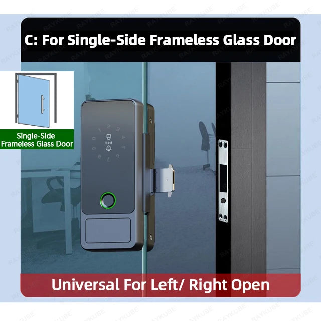 Intelligentes Glastürschloss mit Fingerabdruck, App, IC-Karte & Passwort – RAYKUBE G18 Bluetooth Tuya Schloss für Büro & Zuhause