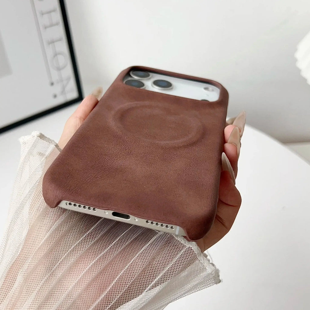 Retro Suede Lederhülle mit magnetischem Schutz für Magsafe und kabelloses Laden