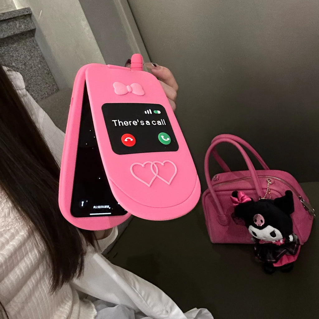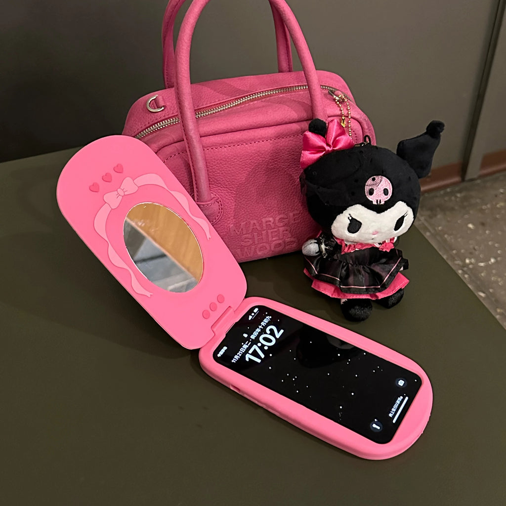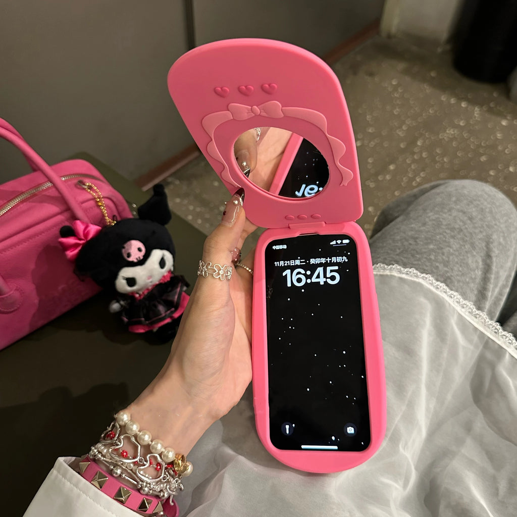 Rosa Klappspiegel-Handyhülle aus Silikon – stoßfest, süß & lustig – passend für iPhone 15, 14, 13, 12, 11 Pro Max