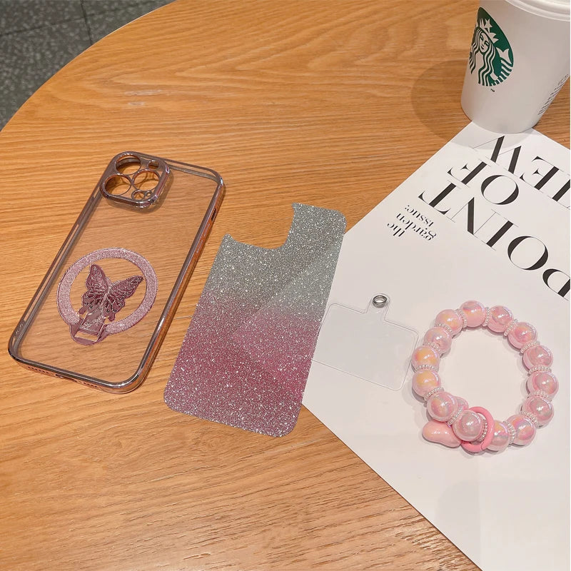 1 x Handyhülle mit Glitzer-Design und Schmetterlingshalter