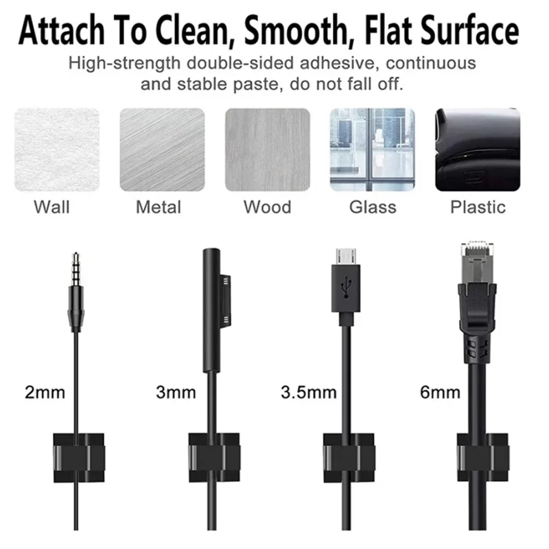 Selbstklebende Kabelclips für Büro, TV und PC – Kabelhalter Organizer