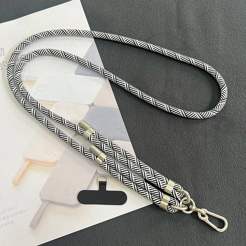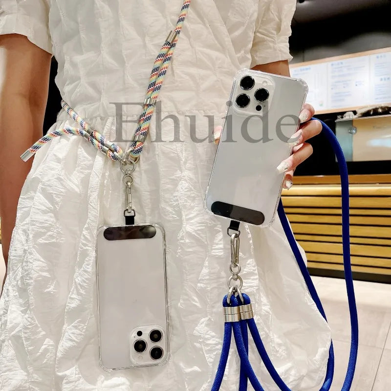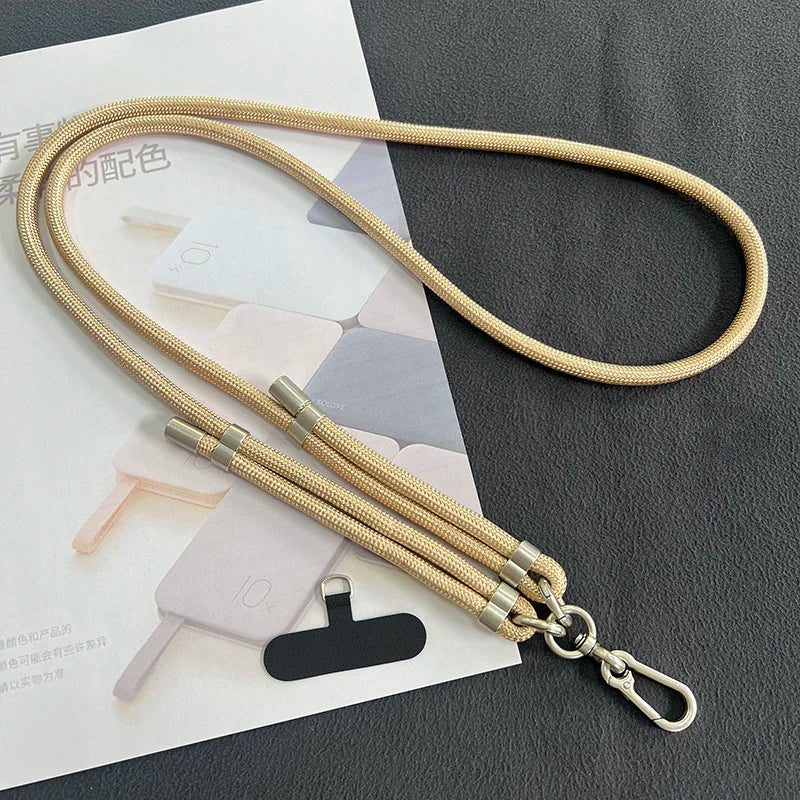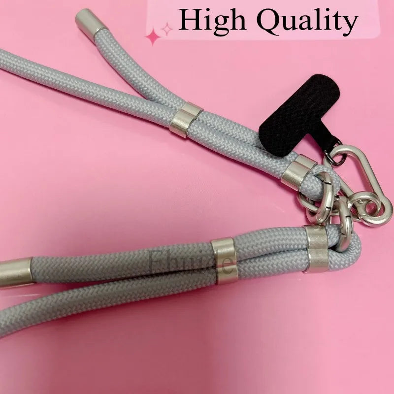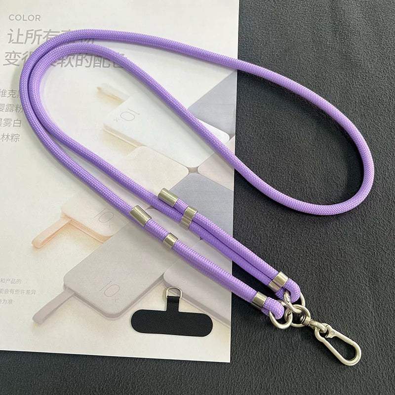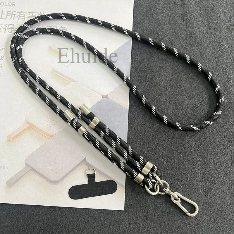 Dieses universelle Crossbody-Handy-Lanyard ist speziell für moderne Smartphones wie iPhone 14 Pro Max, iPhone 15 Pro Max, Samsung S25/S24 Ultra und Redmi Note 13 Pro 4G entwickelt. Mit einem robusten 8 mm Nylonseil und einer Länge von 150 cm bietet das Lanyard Komfort und Sicherheit beim Tragen Ihres Handys, egal ob am Hals, Handgelenk oder als Umhängegurt.