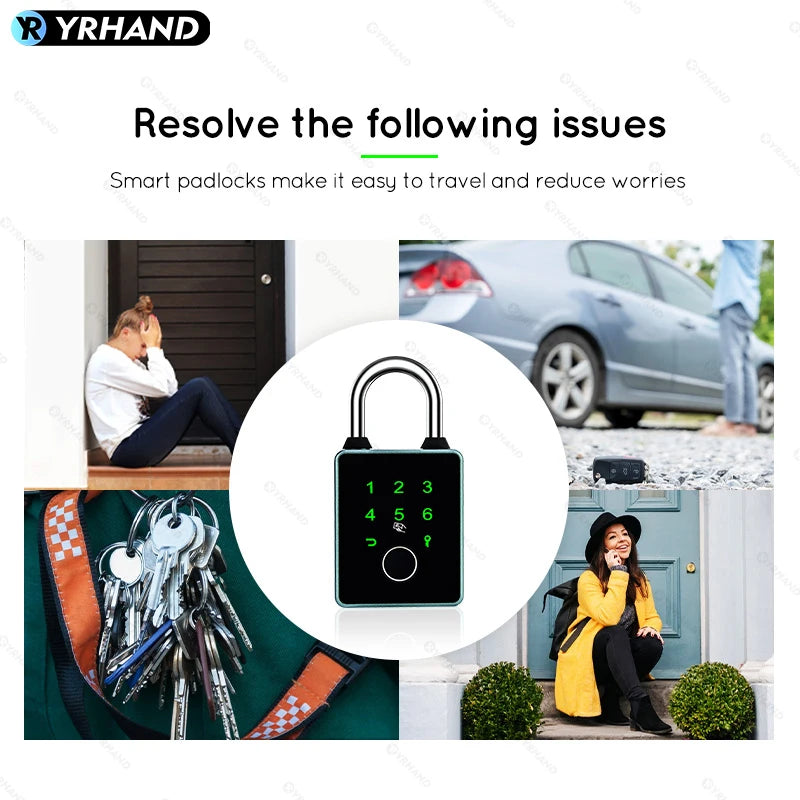 Der YRHAND T55D Smart Fingerabdruck-Vorhängeschloss verbindet moderne Biometrie mit robuster Technologie für höchsten Schutz im Alltag. Mit Unterstützung der Tuya/TTLock App lässt es sich kabellos per Smartphone steuern – ideal für Tür-, Schrank- oder Spindanwendungen.