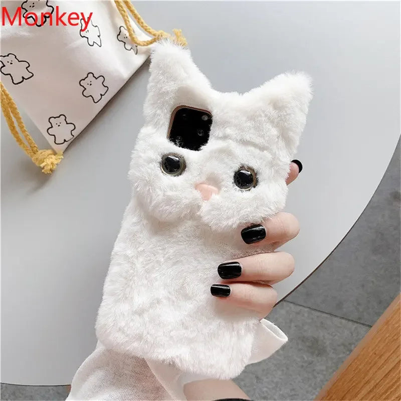 Flauschige 3D Katzen Plüschhülle für Samsung Galaxy Modelle