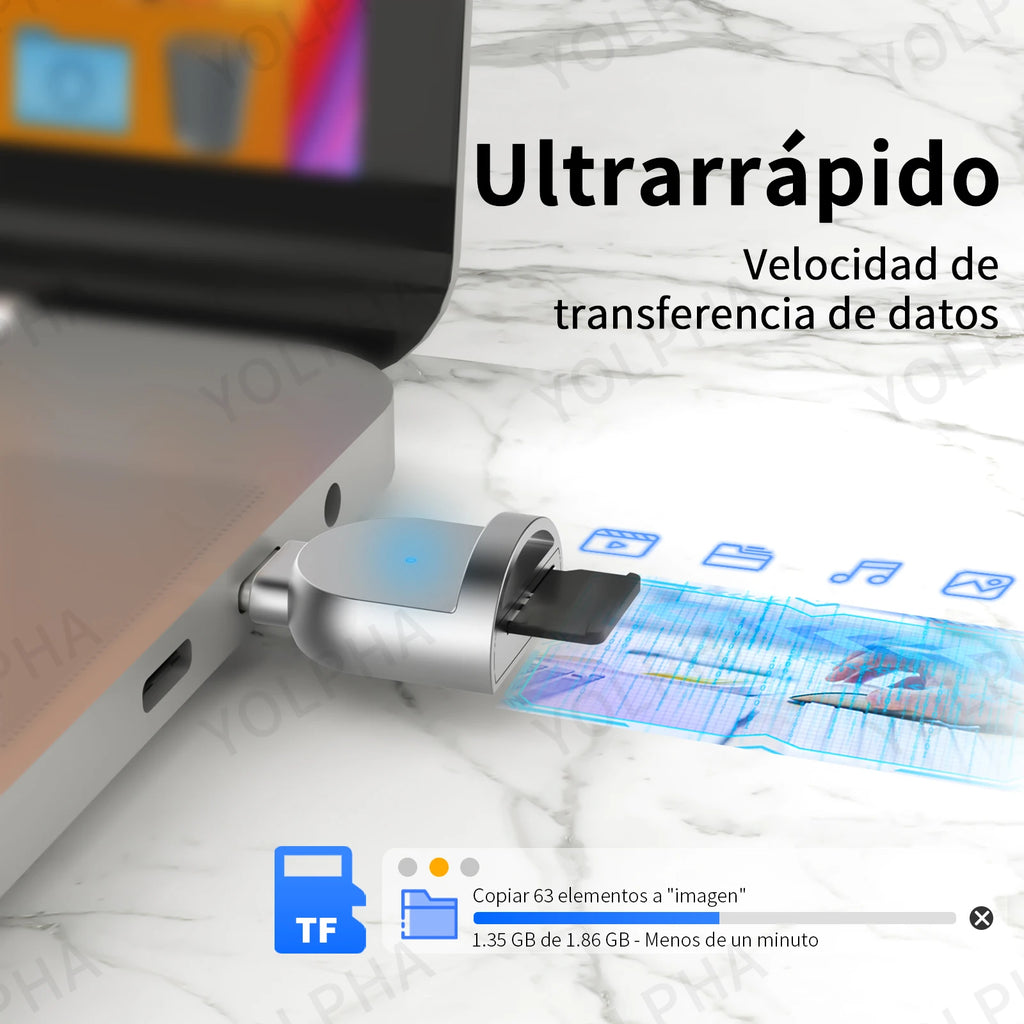Der Typ-C USB Kartenleser Adapter ist ein vielseitiges und kompaktes Zubehör für Smartphones, Tablets und Laptops. Mit seinem dualen Typ-C Anschluss ermöglicht er schnelle und stabile Datenübertragungen zwischen Geräten. Er unterstützt den Anschluss von TF- und Micro-SD-Speicherkarten und ist ideal für Fotos, Videos, Musik oder Dokumente.
