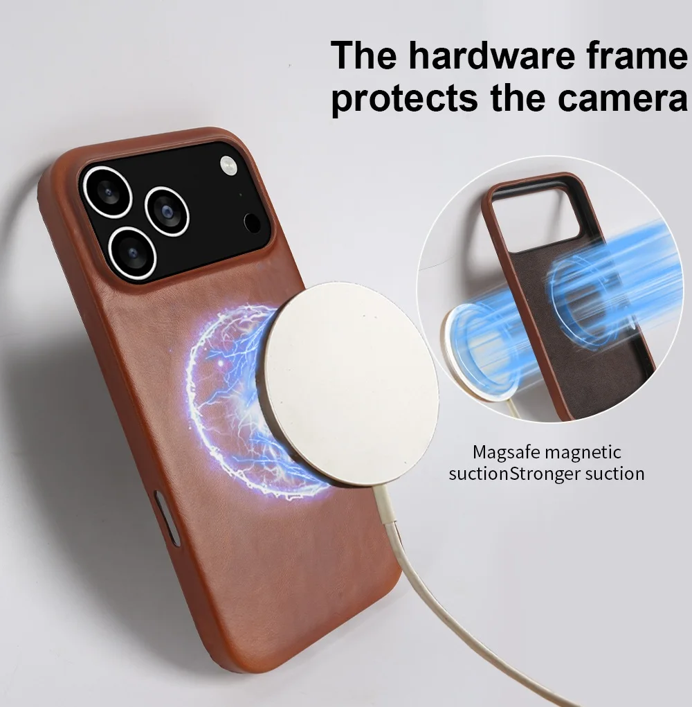 Vintage Echtlederhülle mit MagSafe für iPhone 17 Serie – Stoßfest & Elegant