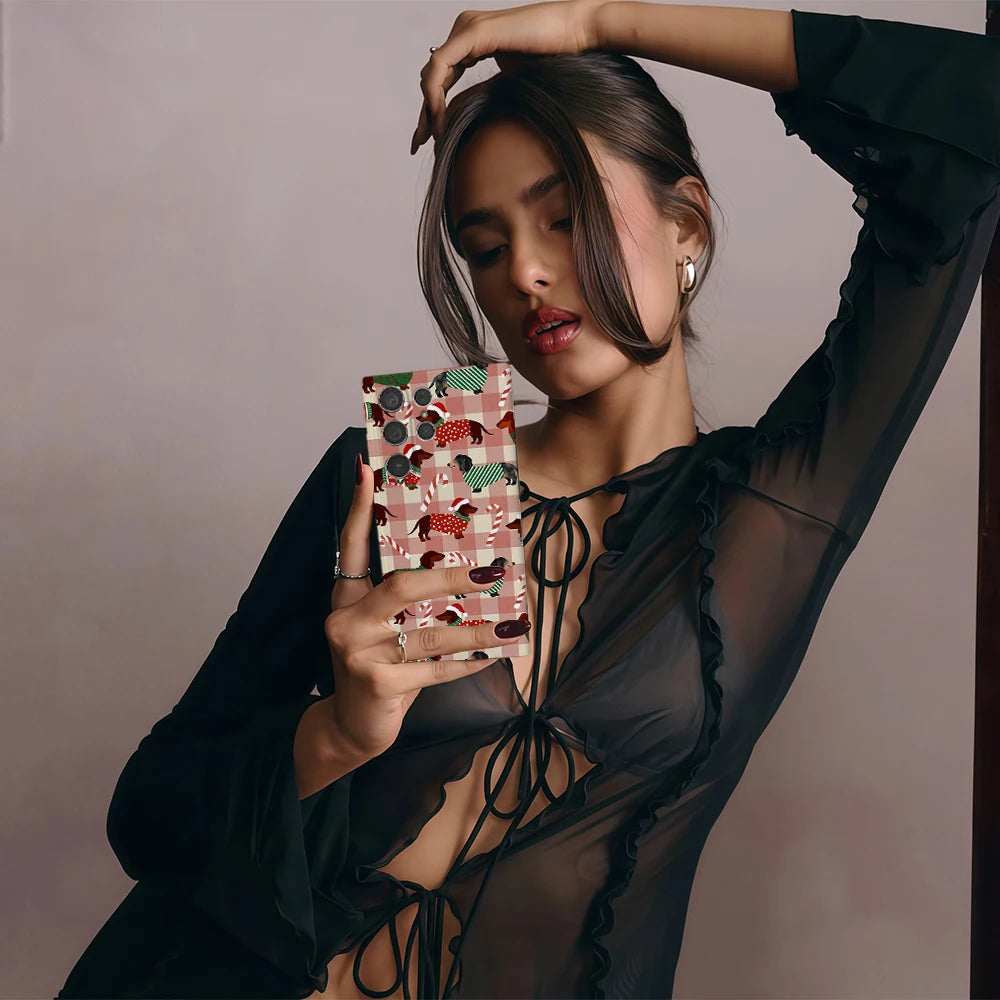 Diese Weihnachts Dackel Handyhülle ist die perfekte Kombination aus niedlichem Design und zuverlässigem Schutz für dein Samsung S23, S24 oder S25. Hergestellt aus hochwertigem PC- und TPU-Material, bietet die Hülle Stoßfestigkeit, Kratzschutz und Staubresistenz, während das weiche Material eine angenehme Haptik und rutschfesten Halt gewährleistet.