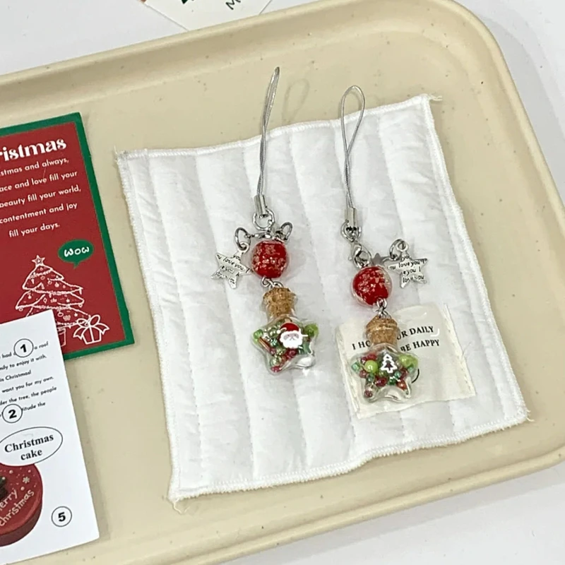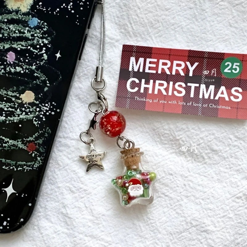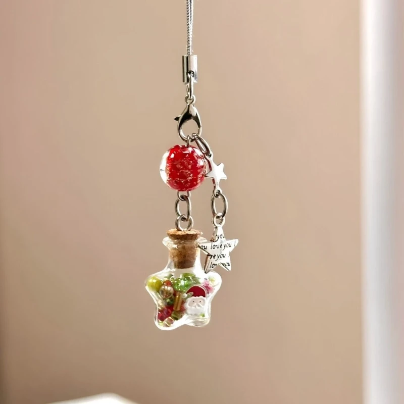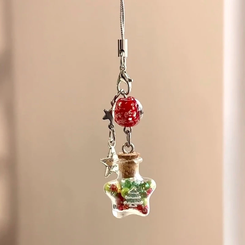 Weihnachts-Handyanhänger mit Stern und Wunschflasche