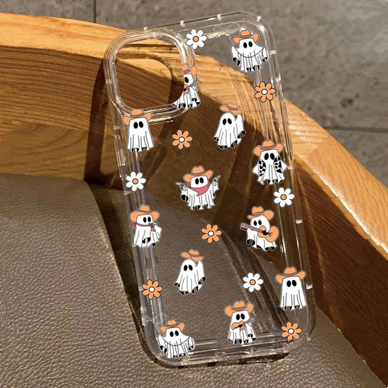 Western Halloween Cowboy Geist und Blumen Motiv transparente Hülle für iPhone 17 16 15 Pro Max