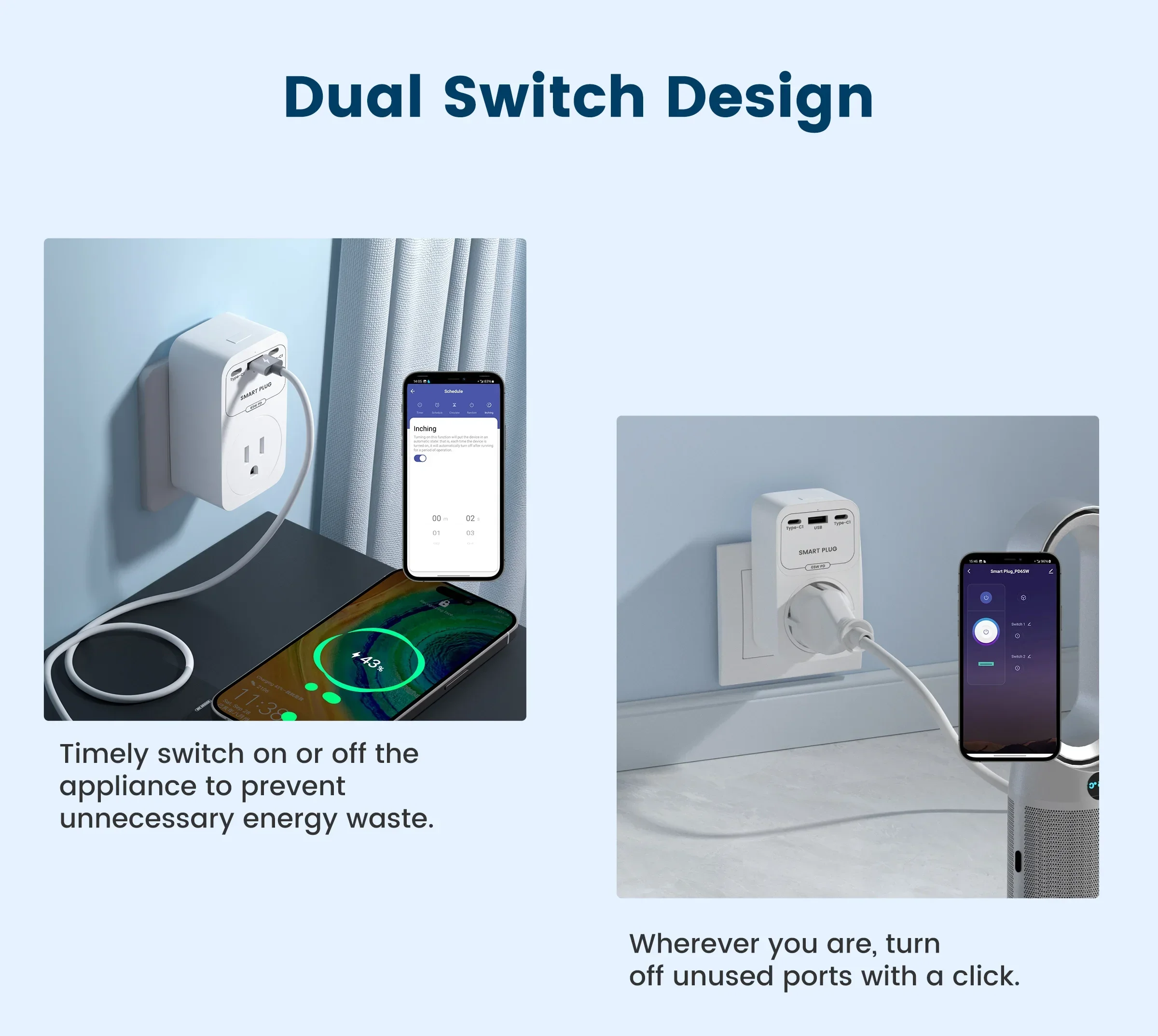 Die integrierten Smart-Chips erkennen den Energiebedarf jedes Geräts und verteilen den Strom optimal. So genießen Sie stabile und effiziente Ladeleistung ohne Überlastung. Zusätzlich ermöglicht die Zeitschaltfunktion geplante Ladezeiten, ideal für energiesparendes Laden über Nacht.