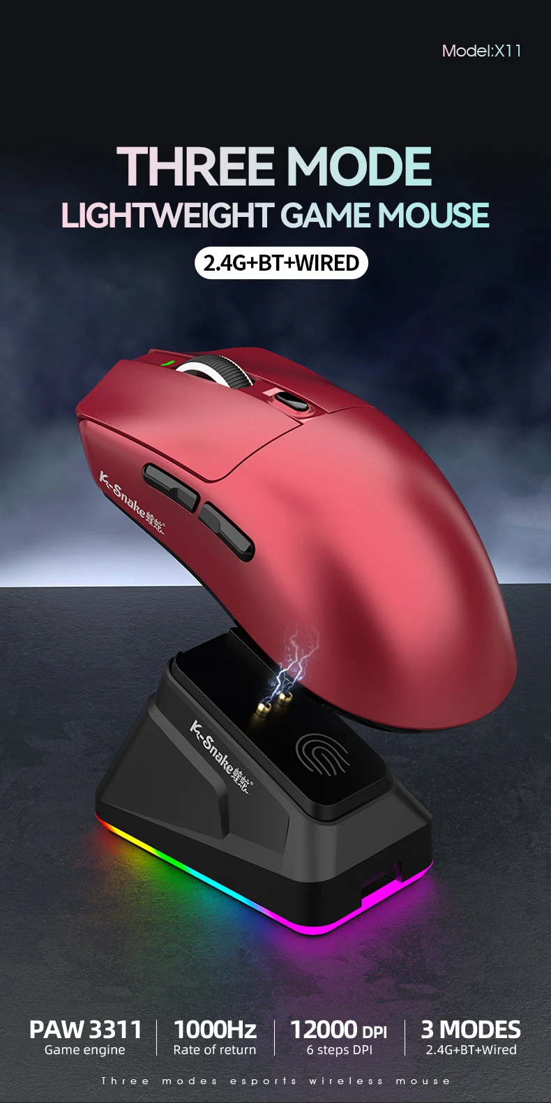 X11 Tri-Mode Wireless Gaming-Maus 12000 DPI RGB